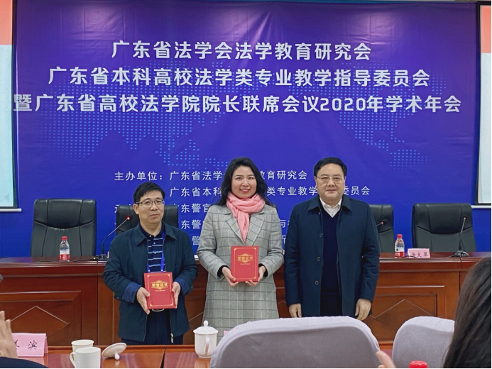 12月20日,广东省法学会法学教育研究会、广东省本科高校法学类专业教学指导委员会暨广东省高校法学院院长联席会议2020年学术年会在广东警官学院举行,本届年会的主题为“一流法学专业建设与卓越法治人才培养”。我院院长张显伟教授、杜承秀教授、李锦辉副教授共同出席了此次广东法学教育界的年度盛会。