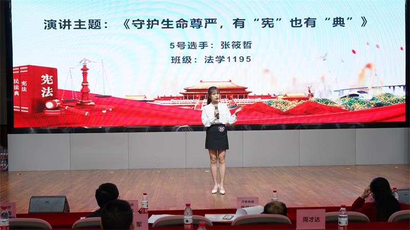 宪法是国家的根本大法,是治国安邦的总章程,是党和人民意志的集中体现,具有最高的法律效力。今年活动主题为:“深入学习宣传习近平法治思想,大力弘扬宪法精神”。此次活动共分为两个部分,分别是“宪法宣传周”启动仪式、宪法与民法典对话演讲比赛。其中,在启动仪式上,对我市“七五”普法优秀法治宣传教育项目和个人进行了表彰,先后颁发“优秀法治文化主题公园”“优秀青少年法治教育实践基地”“优秀法治宣传教育示范项目”“优秀普法人”等奖项。此外,市司法局现场给学生赠送了一批普法书籍。