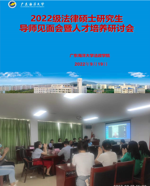 2022年9月19日下午,WilliamHill威廉2022级法律硕士专业学位研究生导师见面会暨人才培养研讨会在教学主楼805学院会议室召开。学院党委书记陈伟斌、学院院长张显伟、副院长韩自强、学院全体校内研究生导师、部分校外研究生导师和其他授课教师、研究生教学管理人员及全体2022级研究生新生通过线上或线下方式参加会议。