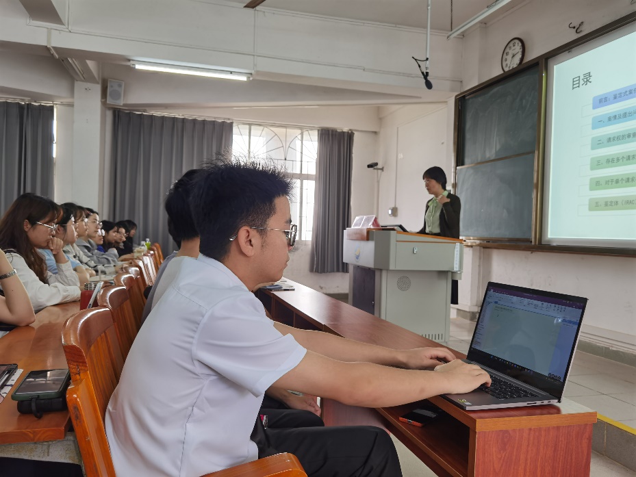 王焜副教授首先介绍了岭南师范学院开展鉴定式案例教学实践的经验,然后通过一个经典案例从案情及提出问题(3W问题)、请求权的审查规则(3W legalbasis)、存在多个请求权基础时的审查顺序(外在结构)、对于单个请求权的审查(内在结构)、鉴定体(IRAC)的写作方法等几个方面详细地阐释了请求权基础案例分析方法的思维的基本理论与司法实务应用,为同学们带来了一场思维的盛宴,为大家日后的法律研习指出了一种规范、高效的思维方法。讲座取得了良好的效果。