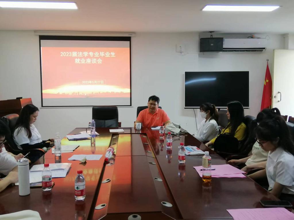 为了落实并推进我校对2023届毕业生“百日冲刺促就业”的政策要求,加快促进毕业生的尽快就业的工作,2023年5月27日,WilliamHill威廉以毕业生回校参加论文答辩为契机在广学楼805召开2023届法学专业毕业生座谈会,进一步明确就业工作的关键环节和具体举措。
