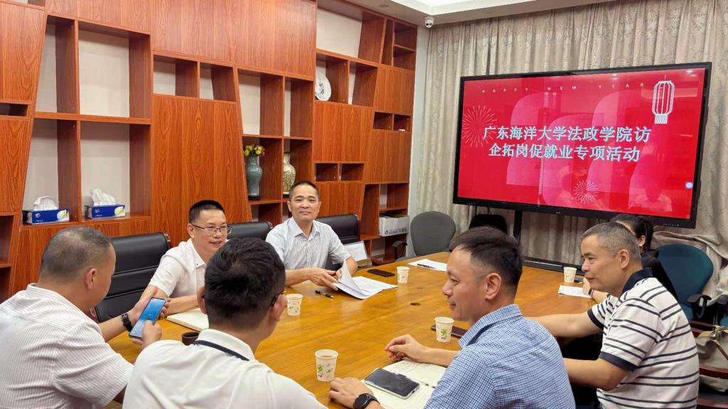 在广东大展律师事务所,律所合伙人柯邵雨主任、方晓、曾清愿副主任以及党支部书记谢明演分别介绍了大展律所成立25年以来的发展历程、律所文化、律师团队建设、成功办案经验、党支部建设等情况。刘澍对律所的深厚文化与业务素养表示赞赏,同时重点介绍了我院法学专业的特色,特别是涉海学科和专业建设、地方立法建设方面的成绩,提出校企双方可同谋发展、共创品牌。