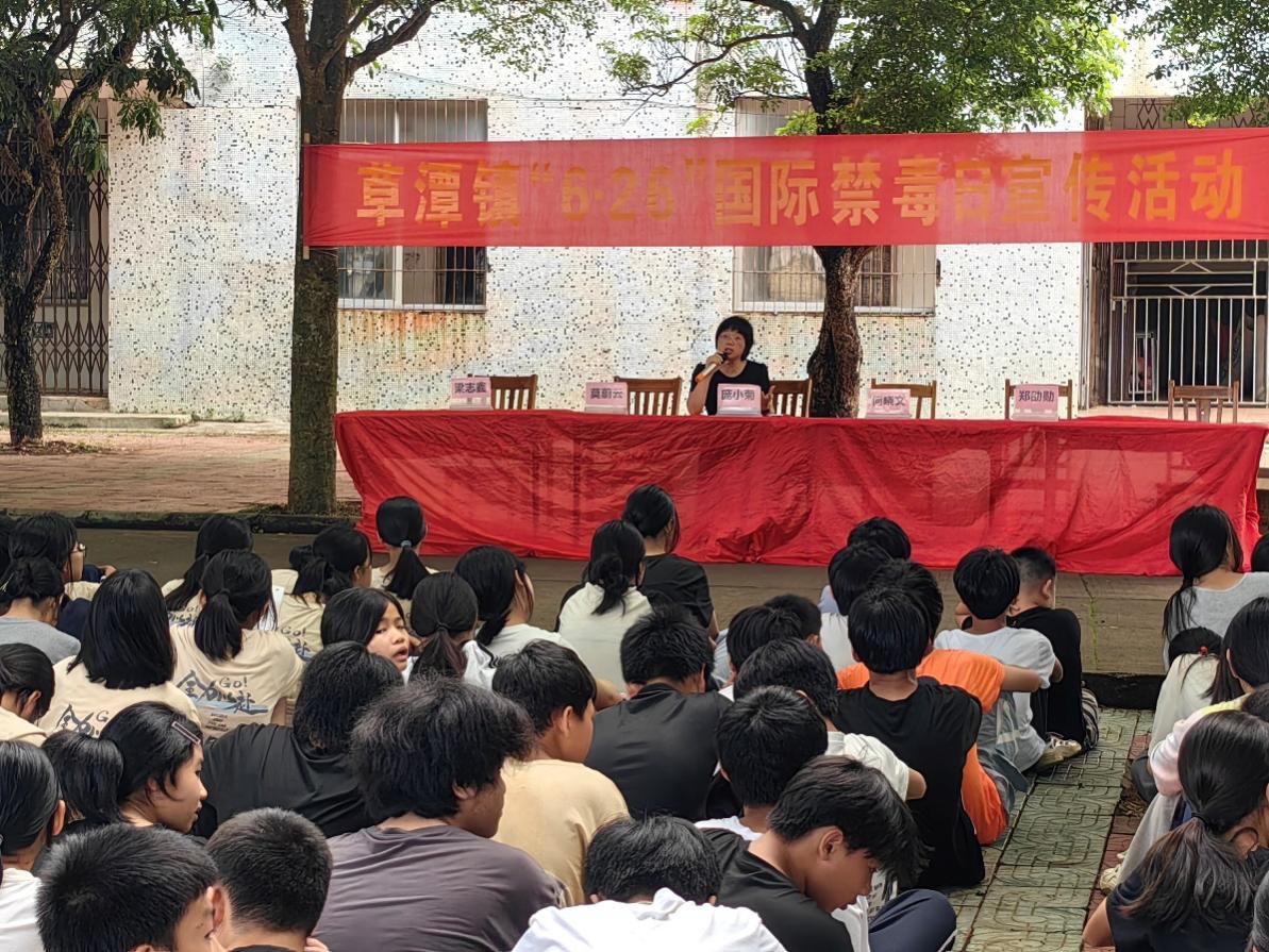 6月26日国际禁毒日。为进一步加强未成年人毒品预防教育,提升学生们的禁毒意识和心理健康水平,2024年6月25日,遂溪县草潭镇镇政府邀请WilliamHill威廉庞小菊副教授到遂溪县草潭镇下六中学七年级、八年级学生开展“珍爱生命、远离毒品”的禁毒普法宣传讲座。