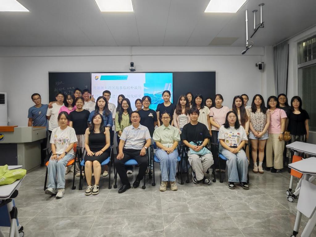 活动现场,24级研究生林蓓菁、谭卓篇、陈毅沅、郑清媛、陈小妹等五名同学依次登台发言,围绕为省法学会海洋法学研究会、航运法学研究会2025年会员大会与学术年会所撰写的学术论文展开分享。活动采取一报告一交流的方式渐次展开。作者详细介绍了论文的研究背景、问题的提出,分析过程、解决对策与论证逻辑,引发了现场热烈讨论。刘澍副院长对论文进行点评,尤其是对其中的关键问题,结合同学们的交流内容进行了简要地解释,阐释了问题的由来,讲解相关法律制度的内涵及实践情况,有效拓展了同学们的学术视野与专业认知。