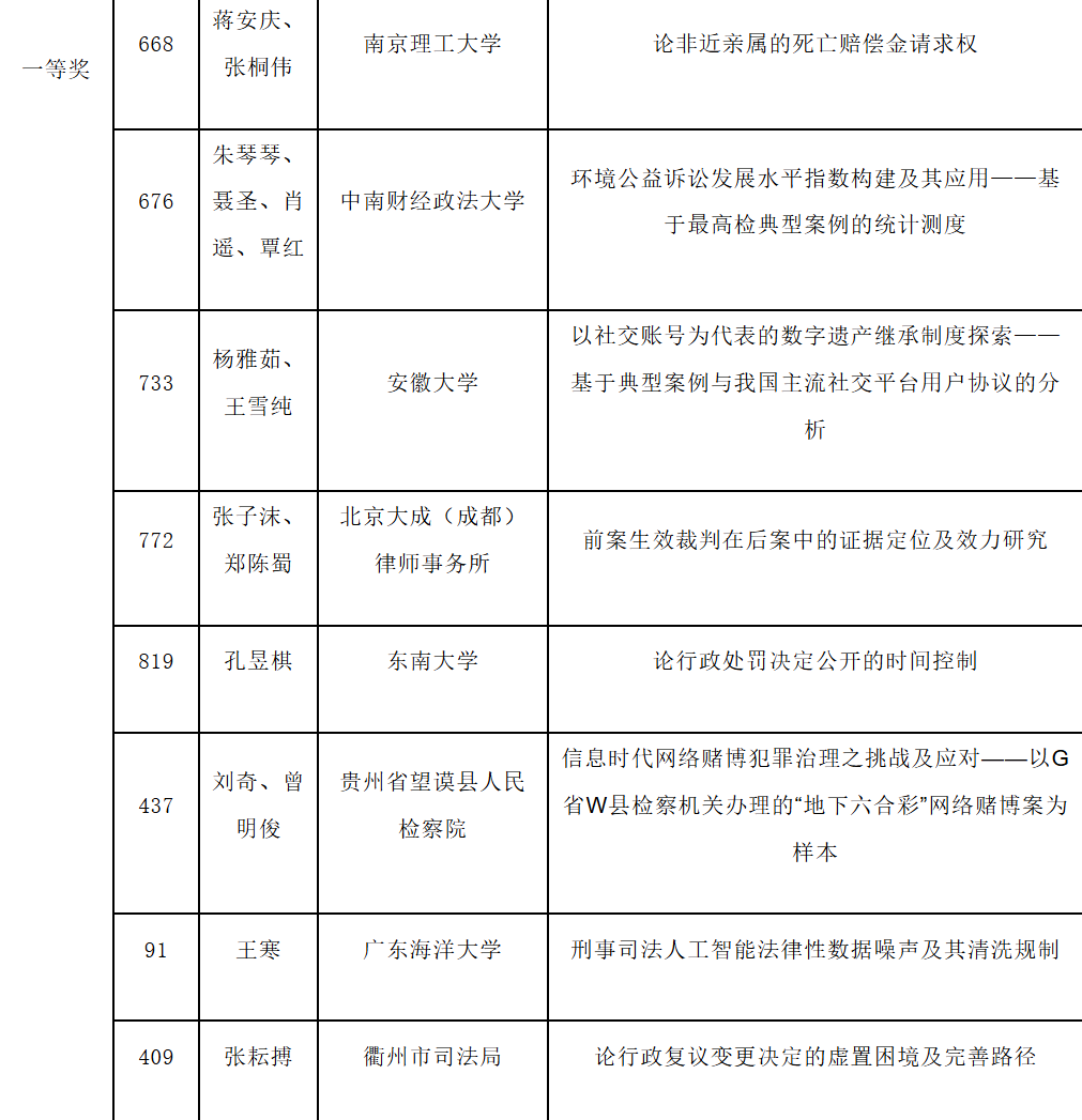 “法经科学杯”全国法学论文大赛是一项聚焦法学实证研究与跨学科前沿的高水平学术赛事。本届大赛共收到投稿1061篇,经多轮匿名评审,最终仅评选出138篇获奖论文,整体获奖率约为13%。其中一等奖仅设18个名额,获奖作品需在问题意识、研究方法和学术创新上均具备较高价值。