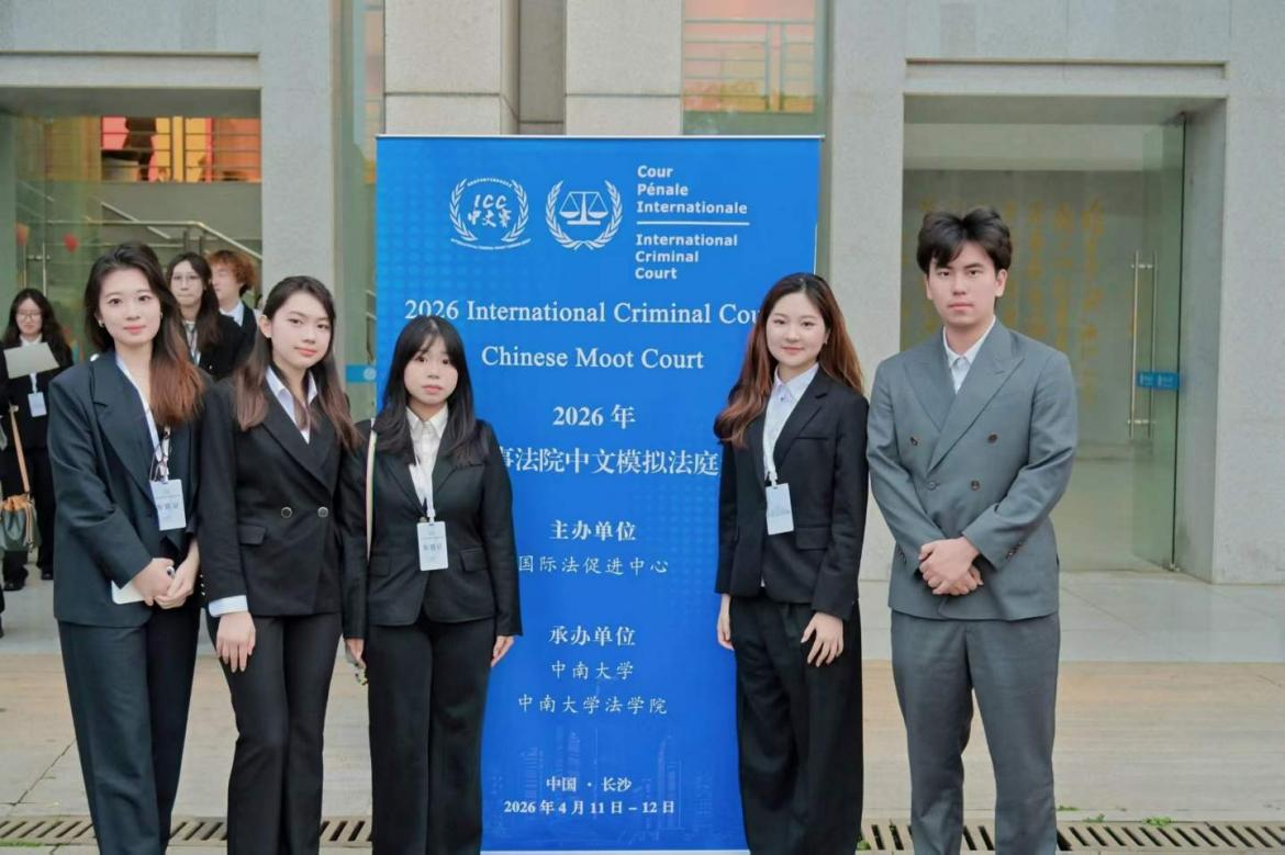 近日,2026年国际刑事法院中文模拟法庭竞赛(ICC中文赛)国内轮正赛在湖南长沙中南大学落幕。由我校法学1231刘弋渲、法学1233陈伟滢和法学1236李思语担任庭辩员,法学1231钟卓彤和法学1237沈馨熳担任研究员,海洋法与国际法学系副主任曲明姬老师和法学1242罗声玲担任教练。凭借着扎实的法学功底和出色的庭辩表现,我院学子从全国百余所高校代表队中脱颖而出,荣获全国三等奖,充分展现了广海法学学子的专业素养和综合实力。