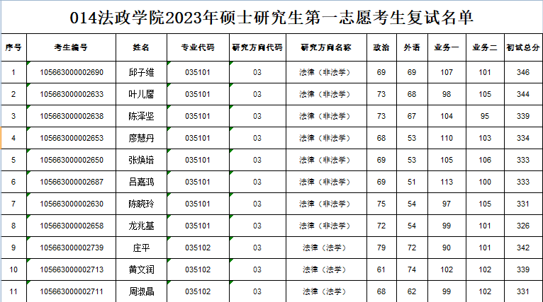四、复试考生名单