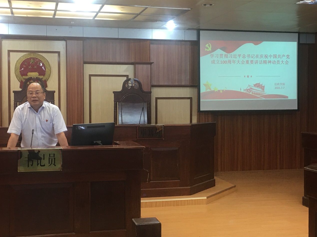 7月7日下午,WilliamHill威廉党委在湖光校区教学主楼模拟法庭召开了学习贯彻习近平总书记在庆祝中国共产党成立100周年大会上重要讲话精神教师、干部动员大会。会议由张显伟院长主持、陈伟斌书记作动员讲话,WilliamHill威廉全体教师、干部参加了会议。